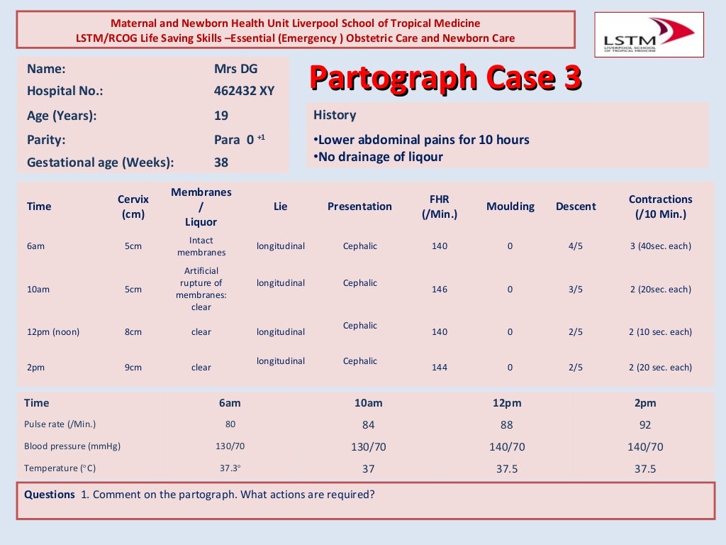 In settings with high neonatal mortality apply chlorhexidine to the umbilical stump daily for the first week of life. Page 2 definition • it is a composite graphical recording of cervical dilatation and descent of head against duration of labour in hours. A partogram or partograph is a composite graphical record of key data (maternal and fetal) during labour entered against time on a single sheet of paper. It is intended to provide an accurate record of the progress in labour, so that any delay or deviation from normal may. Page 1 partograph shrooti shah lecturer national medical college nursing campus 2. Feb 20, 2016 · partograph 1. Relevant measurements might include statistics such as cervical dilation, fetal heart rate, duration of labour and vital signs. Relevant measurements might include statistics such as cervical dilation, fetal heart rate, duration of labour and vital signs. State institute of health & family welfare (sihfw) rajasthan, is an apex level autonomous training and research organization in the health sector of the state. Special emphasis is placed on the use of the partograph in monitoring labour. The skills specific to preventing and managing prolonged and obstructed labour include: Selco foundation seeks to inspire and implement socially, financially and environmentally inclusive solutions by improving access to sustainable energy. Jul 26, 2012 · partogram 1.